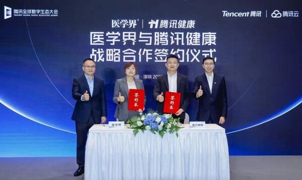 9月16日,騰訊全球數字生態大會期間,醫學界與騰訊健康正式簽署戰略合作協議。醫學界首席商務官毛及先生與騰訊健康總裁吳文達先生共同出席了簽約儀式。